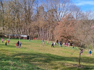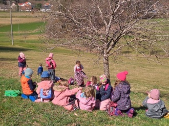 Morgens um 9:30 begann die Wanderung der Vorschulkinder zur Streuobstwiese in Dentlein. Dort trafen wir die 1. und 2. Klasse der Grundschule.