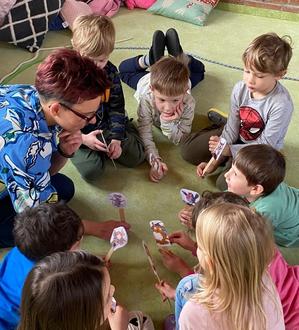 Bei der ansprechenden Lesung hörten alle Kinder gebannt zu und waren beim anschließenden Stabfigurenworkshop sehr kreativ und begeistert dabei.