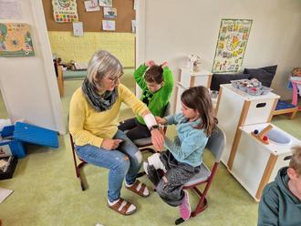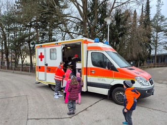 Am Donnerstag, den 13. März 2025 fand in der KiTa Astronauten der Trau-Dich-Kurs statt. Hier lernten die Kinder, wie sie Hilfe holen, Pflaster und Verbände an anderen anlegen können. Das besondere Highlight war der Rettungswagen. Dort hatten die Kinder die Möglichkeit, alle Funktionen kennen zu lernen. So lagen sie auf der Liege, durften die Schränke öffnen und zum Schluss natürlich das Blaulicht und das Martinshorn anschalten. Der Tag hat allen große Freude bereitet und wir danken Frau Manuela Wenderlein und Frau Tanja Keil vom Deutschen Roten Kreuz für ihr Engagement.