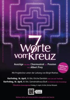 | 10 Uhr | Chorgottesdienst zum Passions-Pop-Oratorium „7 Worte vom Kreuz“ unter der Leitung von Birgit Mathes |