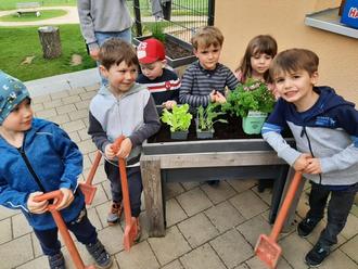 Auch dieses Jahr waren die Kinder wieder fleißige Helfer bei der Bepflanzung ihrer Hochbeete. Jede Gruppe besitzt ein eigenes Hochbeet. Eingepflanzt wurden verschiedene Gemüsesorten und Kräuter, wie Kohlrabi, Salat, Petersilie und Kresse. Die Kinder hatten dabei sehr viel Freude.
