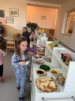 Die Gruppen beschäftigten sich zuvor intensiv mit dem Thema „Ostern“ und führten dazu auch einige Bildungsaktivitäten in ihren Gruppen durch. Im Bistro hatten wir ein tolles Oster-Buffet und ließen es uns schmecken.