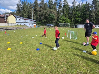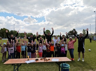 So konnten die Kinder auf Biertische schießen, schauen, wer den stärksten Schuss hat, der schnellste Sprinter ist und durch einen Slalom den Fußball ins Tor schießen. An einer Station hatten sie die Möglichkeit, ein kurzes Fußballspiel zu spielen.