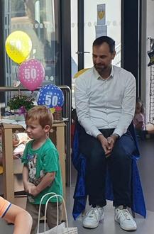 Am 16.06.2023 begrüßten wir unseren 1. Bürgermeister in der KiTa Sternschnuppe anlässlich seines 50. Geburtstages. Alle Kinder der KiTa haben in der Woche davor schon fleißig das Geburtstagslied für ihn geübt.