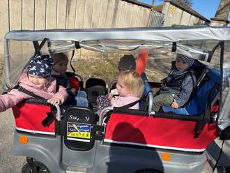 Mit den zwei Krippentaxis sind Kinder und Personal der Mond- und Sternchengruppe regelmäßig unterwegs. Wir spazieren dabei nicht nur durch Großohrenbronn oder besuchen unseren Wald, sondern wir spielen auch gerne auf dem Generationenpark.