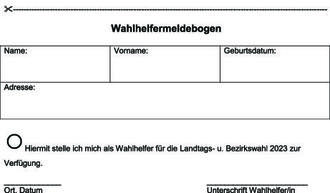 Sollten Sie Interesse haben, können Sie sich mit dem untenstehenden Formular bei uns melden (Einwurf in den Briefkasten genügt), oder telefonisch im Ordnungsamt unter Tel. 09855 / 9799-13. Für weitere Fragen zum Thema Wahlhelfer steht Ihnen das Ordnungsamt gerne zur Verfügung.