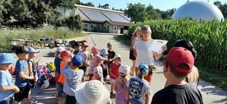 Kurz vor den Sommerferien wurden die Sonnen-, Wolken- und Regenbogenkinder von der Familie Hoffmann aus Kaierberg auf den Bauernhof eingeladen.