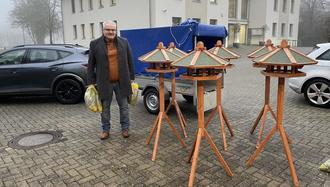 Nach Knetä, Lichterinstallationen, Einwecktöpfen... gab es 2022 für unsere Kindergärten Vogelfutterhäuschen als Weihnachtsgeschenk. Wenn ich die Freude in den Kinderaugen gesehen habe, bin ich überzeugt, dass wir wieder etwas Schönes für unsere Kids gefunden haben. Bei den KiTas am Marienbach und am Sonnenteller konnte mich unsere Jugendbeauftragte Jasmin Singh-Neckermann noch begleiten, bevor sie zum Jugendparlament in die Schule durfte. In Pfändhausen war zunächst der Kindergarten St. Sebastian an der Reihe, dann noch die Raupen. In Hambach gings von den Eichhörnchen noch ins Haupthaus der Marien-Kita Hambach. Natürlich gabs zu jedem Häuschen auch eine Grundausstattung an Vogelfutter. Viel Spass beim Zugucken!