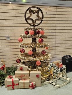Der Bauhof sorgte in diesem Jahr zudem für einen besonderen Blickfang: Mit einer nachhaltigen und außergewöhnlichen Idee wurde ein Christbaum aus alten Wagenrädern gestaltet. Liebevoll geschmückt mit Lichterketten und Christbaumkugeln und gekrönt von einem Stern inmitten eines Rades als Spitze, verlieh dieser extravagante Weihnachtsbaum der Feier eine ganz besondere Note.