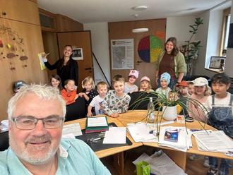 letzte Woche hatte ich Schmetterlinge... nicht in meinem Bauch, sondern in meinem Büro. Die Schmetterlinge der KiTa Hambach haben mich heute überrascht und nach dem Bauhof auch die Gemeindeverwaltung besucht. Welche Berufe gibt es im Rathaus? Mit welchen Geräten arbeiten die Leute im Rathaus, auch der Bürgermeister. Was macht der! eigentlich? Viele Fragen hatten die Kids. Dafür gabs für alle Pfefferminzbonbons.