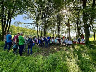 An Christi Himmelfahrt hat nun die Pfarreiengemeinschaft Marienbachtal zu einer Flurprozession zum „Laarvichskirfich“ mit Gottesdienst eingeladen, anlässlich diesem das neue Kreuz eingeweiht werden sollte.