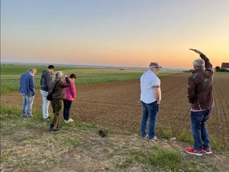 Nach der Rückfahrt zum Ausgangspunkt stand die Betriebsbesichtigung Biohof der Familie Markert auf dem Programm. Seit ca. 2015 hat sich die Familie Markert der biologischen Landwirtschaft verschrieben und verkauft die meisten ihrer Vielzahl an Produkten auch auf dem eigenen Hof. Rüdiger Markert stellte auch die Fläche vor, die in diesem Jahr mit Chia angesät wurde. Durch die extrem kleinen Samen eine besondere Herausforderung. Als sich die Teilnehmer dann am Ende bei verschiedenen selbstgebackenen Quiches mit Zwiebeln und Wirsing auf Dinkelbasis stärken, beantworten Manuela, Rüdiger, Noah und Niklas Markert gerne noch offene Fragen.