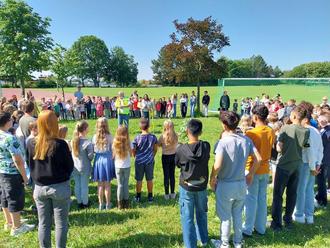 Unter diesem Motte haben wir am 10. Juni an der Grund- und Mittelschule am Sonnenteller eine Esskastanie gepflanzt. Rektorin Daniela Behr hat die Demokratie in Form eines Plakates als Grundlage für unseren Baum in das vorbereitete Loch gelegt. "Wir setzen auf Demokratie!“ Sie erinnerte an den 75. Geburtstag unseres Grundgesetzes, das bei uns die Demokratie sichert. Ich erläuterte, wie die Demokratie funktioniert, wie wichtig sie ist und wie verletzlich sie auch sein kann, wenn man undemokratische Kräfte wirken lässt. Allerdings habe ich auch darauf hingewiesen, wie wichtig es ist, die Demokratie auch verantwortungsvoll einzusetzen, insbesondere muss die Mehrheit auch die Schwachen und Minderheiten mitnehmen. Eine Klasse Veranstaltung, die auch von unserer Jugendbeauftragten Jasmin Singh-Neckermann unterstützt wurde.