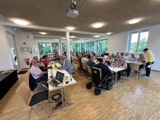 Am 13.06.2024 waren die Altbürgermeister und Altbürgermeisterinnen aus dem Landkreis Schweinfurt mit ihren Partnern bei uns zu Gast. Ich durfte Michael Geck und Edeltraud Baumgartl mit den Kolleginnen und Kollegen im Bürgerhaus Dittelbrunn begrüßen. Nach dem Empfang durch Michael konnte ich unsere Wohlfühlgemeinde vorstellen, insbesondere die vielen Aktivitäten seit 2012. Herr Landrat Töpper hieß die „Ehemaligen“ ebenfalls willkommen. Im Anschluss stellte ich gemeinsam mit Florian Grebner, Joachim Perleth und Maximilian Hümpfner unsere neue Kita "Am Sonnenteller" vor. Die Kolleginnen und Kollegen waren von unserer Gemeinde Dittelbrunn sehr begeistert.