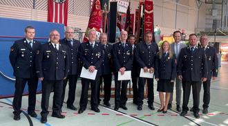 Am folgenden Tag fand nach der Totenehrung die staatliche Ehrung durch Landrat Florian Töpper statt. 4 Kameraden erhielten eine Ehrung für 40 Jahre aktiven Feuerwehrdienst: Robert Schwach, Roland Markert, Peter Kraus und Michael Hofmann. Thomas Schmitt, der 2. Kdt. der FF Dittelbrunn erhielt das Bayerisches Feuerwehrehrenkreuz in Silber. Für langjährige Vereinstreue erhielten Peter Müller (25 J), Peter Kraus, Robert Schwach, Roland Markert, Michael Hofmann (alle 40 J.) Alfred Markert, Hans Finzel, Richard Markert, Adolf Hofmann und Walter Clarner die Ehrung durch den Vereinsvorsitzenden Dirk Lindner. Für die Gemeinde gratulierte 1. Bürgermeister Willi Warmuth