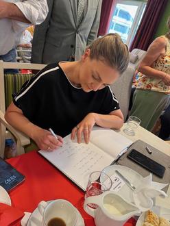 Gesundheitsministerin Judith Gerlach beim Eintrag ins Goldene Buch der Gemeinde