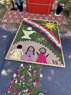 Ebenso haben waren die Fronleichnamsteppiche wieder liebevoll gelegt.