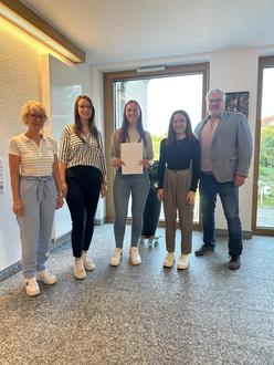 Geschäftsleiterin Dagmar Aberle, Personalrätin Sophia Popp, Ronja Zeitler, Leona Mansius, 1. Bgm. Willi Warmuth