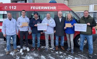 Gleichzeitig mit der Eröffnung des Bürgerhauses in Dittelbrunn hat der Verein Stuhlkreis 2012 n.e.V. im Zuge seines 10-jährigen Bestehens wieder den „Glühwein im Kreise“ auf dem Feuerwehrparkplatz durchgeführt. Den Erlös hat der Verein wie bei jeder bisher durchgeführten Veranstaltung auch diesmal einem guten Zweck zur Verfügung gestellt. In diesem Jahr erhielten sowohl die Aktiven der Dittelbrunner Feuerwehr, als auch der Hort der KiTa am Sonnenteller von der Vorstandschaft des Stuhlkreises 2012 n.e.V., Peter Kraus, Timo Kraus und Karl Königer jeweils 250 Euro überreicht. Als Träger beider Institutionen freute ich mich mit der Leitung des KiTa am Sonnenteller, Florian Grebner und Marion Künzl sowie dem 1. Kommandanten der FFW Dittelbrunn, Sebastian Achatz, über diese Unterstützung.