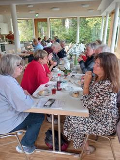 Auch 6 bis 8 Gäste der Nachbarschaftshilfe Dittelbrunn waren an diesem Nachmittag zu Besuch, was das gesellige Miteinander weiter förderte. Bei Kaffee und selbstgebackenem Kuchen, der für das leibliche Wohl der Anwesenden sorgte, ließ es sich die Gruppe richtig gut gehen.