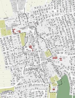 Sanierungsgebiet "Altort Hambach" mit gekennzeichnetem Geltungsbereich der Gestaltungsfibel und dem Kommunalem Förderprogramm