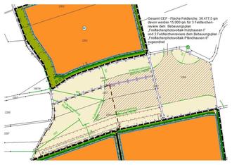 Neben den internen Ausgleichsflächen innerhalb des Geltungsbereiches sind für den Artenschutz auch externe CEF-Flächen erforderlich, die zwischen den Geltungsbereichen auf den Fl.-Nrn. 2259, 2268, 2257 und 2256 (alle Gemarkung Holzhausen) liegen. Von den CEF-Flächen wird ein Teilbereich als externe Ausgleichsflächen nach § 9 Abs. 1a dem o.g. Vorhaben zugeordnet.
