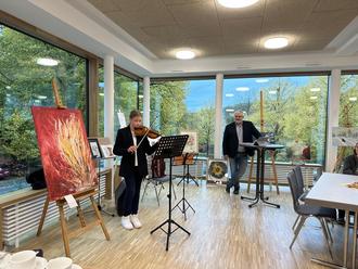 .Im „Café Kunst“ konnte man vor oder nach dem Besuch der Ausstellung am Sonntag und an Allerheiligen gemütlich einen Café trinken und ein Stück Kuchen genießen. Die aufgestellte Spendenkasse ergab am Ende der Woche einen Inhalt von 300 Euro, die für einen gemeinnützigen Zweck verwendet werden können.