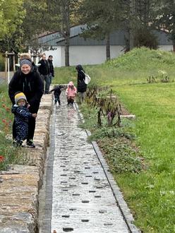 Eine Besonderheit ist zum einen der „Bachlauf“, die Quelle, die von der Waldstraße herunterläuft wurde genutzt, um den Kindern im Sommer mit ein bisschen Wasser den Spaß zu erhöhen. Zum anderen auch die Blühstreifen, die als ökologischer Bestandteil, den Bienen und Insekten Nahrung und Aufenthalt gewähren.