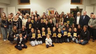 Die gesamte Korbballjugend U12 mit den Trainerinnen Janine Gülsin und Sarah Marcato, sowie die Spielerinnen: Soey Gerlach, Anna-Sophie Gheorges, Sophina Giesbrecht, Emma Greiner, Selena Gülsin, Lea Hofmann, Milana Horn, Lilly Marcato, Emilia Ramirez, Melissa Schönmeier, Sophie Schuler, Lara Volpert und Ella Warmuth wurden geehrt, da Sie Bezirksmeister in der Hallensaison 2023/24 gewannen, den 3. Platz der Bezirksmeisterschaft und 2024 Bezirksmeister in der Feldrunde wurden und ebenso den 2. Platz der Bezirksmeisterschaft belegten.