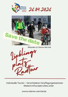 Bitte merken Sie sich den Termin für die „Lieblingsradtour“ am 26.04.2026 bereits heute in Ihrem Kalender vor.