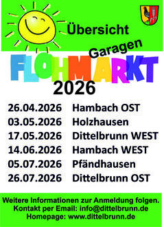 Auch in diesem Jahr bietet die Gemeinde Dittelbrunn wieder Garagenflohmärkte im gesamten Gemeindegebiet an.