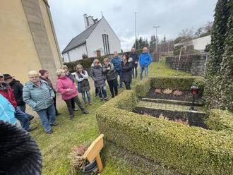 | Pflanzanlage vor Maria-Statue (Buchshecken und Pflanzbeete) entfernen. Stattdessen „Podest“ evtl. als Naturstein für Schale oder Licht aufstellen | |