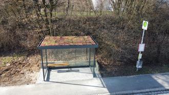 In Hambach konnten wir das durch einen Verkehrsunfall zerstörte Buswarthäuschen wieder aufstellen. Passend zum Grünen Plan mit Dachbegrünung.
