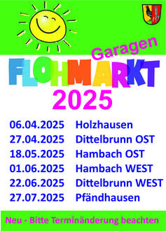 Die Gemeinde Dittelbrunn bietet auch in diesem Jahr wieder die Möglichkeit an Garagenflohmärkten im Gemeindegebiet teilzunehmen.