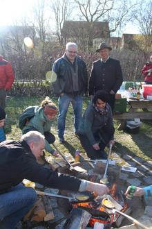 Im Anschluss an das „Pflanzen“ lud Heuler die Gäste zu einer Hambach Spezialität, dem „Spatenei“ ein, welches den Anwesenden sehr gut mundete.