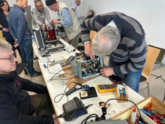 Das 3. Repair-Café, diesmal in Pfändhausen, konnte wieder dazu beitragen, das Wegwerfen von „alten“ Geräten zu vermeiden. Von 13 defekten Artikeln konnten 9 wieder zum laufen gebracht werden. Während des Wartens gabs Kaffee und Marthas Schokoladenkuchen. Ich sage dem Team mit Thomas, Klaus, Jürgen, Peter, Martin, Phillipp, Frank und Matthias herzlichen Dank! Das nächste Repair-Café findet im Juni, dann in Holzhausen, statt. Weiter so!