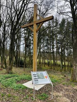Der „Laarwichskirfich“ Der „Lauerbachsfriedhof“ bezeichnet heute die Stelle eines untergegangenen Dorfes. Lauerbach wird vermutlich schon um 850, gesichert 1302, in Urkunden erwähnt. Aber schon 1425 wird von einer Wüstung gesprochen. Die Bewohner sind wahrscheinlich wegen Wassermangel und schlechten Böden nach Niederwerrn abgewandert. Dort tauchte der Familiennamen Lauerbach auf. Einzig die kleine Kirche die dem Heiligen Ägidius geweiht war, blieb bis ins 18. Jahrhundert stehen und war Ziel von Prozessionen, auch aus Schweinfurt. Dann aber zerfiel das Kirchlein. Reste der Grundmauern wurden nach 1950 zum Hausbau in Hambach ausgegraben. Um an den Ort zu erinnern, wurde damals von der Hambacher Jugend ein Holzkreuz aufgerichtet und mit einer feierlichen Prozession aus Hambach eingeweiht. Dieses Lauerbachkreuz stürzte vor einigen Jahren um und wurde nun von der Gemeinde Dittelbrunn im Rahmen des Regionalbudgets neu errichtet und von der Regierung von Unterfranken mit 80% gefördert. Dieses neue „Laarwichskreuz“ soll auch wieder feierlich mit einem Gottesdienst vor Ort eingeweiht werden. Wir laden die ganze Gemeinde gemeinsam mit der Pfarreiengemeinschaft Marienbachtal zu einer Prozession, die an Christi Himmelfahrt um 9:15 Uhr am Sportheim in Hambach beginnt mit anschließender Messfeier am Lauerbachskreuz herzlich ein. Im Anschluss an die Messfeier ist für Speis und Trank gesorgt.