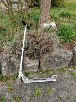 Seit geraumer Zeit steht vor dem Rathaus Hambach ein silberner Cityroller, der auf seinen Besitzer wartet.