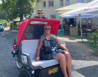 Ob eine Spazierfahrt ins Grüne oder eine Fahrt zur Bank, die Zielmöglichkeiten sind vielfältig und passen sich Ihren Bedürfnissen an. Unser Angebot richtet sich an Senior:innen und Menschen mit Behinderung. Unsere geschulten ehrenamtlichen Pilot:innen sprechen gerne die Fahrstrecke vor Fahrtbeginn persönlich mit Ihnen ab. Eine Fahrt ist auf die Dauer von etwas ein bis zwei Stunden ausgelegt. Die Fahrten mit der Rikscha sind kostenfrei. Sie haben Interesse für sich selbst oder Ihre Familie, Freunde und Bekannte, dann melden Sie sich jederzeit gerne bei uns.