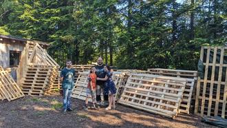 Am 25. Juni bekamen wir – vor allem für die kommenden Sommerferien – eine frische Ladung Paletten zum Bauen für die Kinder und Jugendlichen auf die Outdoor-Ranch geliefert. Hierfür möchten wir uns sehr herzlich beim Einrichtungshaus Schulze in Rödental und seinem Mitarbeiter Sascha Best im Besonderen bedanken. Bereits zum zweiten Mal hat Sascha in Eigenregie einen kompletten Lkw Paletten zu uns gebracht und somit den Nachschub an Paletten für unsere fleißigen Baumeister*innen sichergestellt. Tatkräftig wurden wir beim Abladen von seinen beiden Kindern Felicitas und Maximilian, sowie unserem Ehrenamtlichen Lukas unterstützt. Es kann also wieder kräftig gebaut werden.
