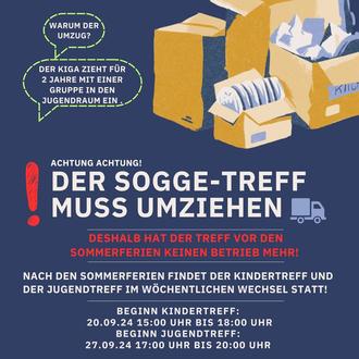 Sogge-Treff: Aufgrund der räumlichen Veränderungen wird es zu Änderungen in den Öffnungszeiten kommen! Nach den Sommerferien 24 wird der Kindertreff und der Jugendtreff im wöchentlichen Wechsel stattfinden.