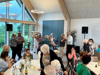 Das Hans-Lotter-Bürgerhaus war mit 65 Gästen bestens gefüllt und durch den Klang von Livemusik aus früheren Jahren entstand eine wundervolle Atmosphäre. Die Teilnehmer:innen der Eröffnungsveranstaltung ließen sich von den mitreißenden Klängen des Duos Regenbogen verzaubern. Klassiker wie "Aber dich gibt’s nur einmal für mich" und "Die Fischerin vom Bodensee" sorgten für eine ansteckende Tanzstimmung.