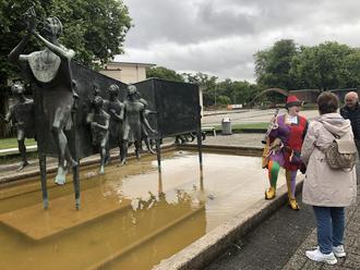 Denkmal des Rattenfängers von Hameln, "seine Nachfolgerin" im Gespräch mit Dörfles-Esbachern