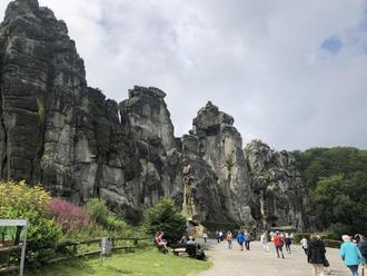 Nach dem reichlichen, gemütlichen Frühstück erwartete uns am 2. Tag die flotte Reiseleiterin Sabine und ideales Wetter für unseren Tagesausflug in den Teuto-burger Wald; die Externsteine, Kult und Schutz in der Steinzeit unserer Vorfahren; das Hermannsdenkmal ein riesiges Monument im Lippischen Land. Unsere Reiseleiterin erklärte und das Autokennzeichen LIP „ Leben im Paradies“! trifft zum Teil schon zu, Burgen, Schlösser, toskanische Landschaftszüge, noch viele Kartoffel- und Erbsenfelder. Aber bei uns im Coburger Land ist es auch schön. In der gemütlichen Stadt Detmold verbrachte jeder nach Lust und Appetit den Nachmittag. Das Abendessen wieder als Büffet mit allem was den Gaumen freut. Da die Sonne noch lachte, verbrachten viele von uns den Abend auf der Hotelterrasse oder im Restaurant bei diversen Getränken und guter Unterhaltung.