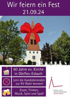 60 Jahre ist unsere Kirche alt. Dieser Geburtstag soll am 21. September kräftig gefeiert werden mit Angeboten für Klein und Groß, mit Frauenfrühstück und Mitmachkonzert für Kinder, Kirchenführung und Quiz, Livemusik im Innenhof, Infos zum geplanten Umbau von Gemeindehaus und Kirchturm und vieles mehr. Wir schauen zurück und nach vorn: Im Rahmen der Kirchweih kann man auch die Kandidatinnen und Kandidaten für den neuen Kirchenvorstand kennenlernen. Los geht’s in der Früh um 9 Uhr mit dem Frauenfrühstück und ab 15 Uhr startet das bunte Programm. Für das leibliche Wohl ist bestens gesorgt! Falls Sie sich noch bei der Gestaltung beteiligen wollen, melden Sie sich bei Vikarin Isabel Wais, Tel. 0177 23 88 73 4.