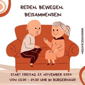 Über alte Zeiten reden, Sitzspiele spielen, Übungen lösen und schöne Zeit miteinander verbringen … Genau das können Sie bei „Reden, Bewegen, Beisammensein“ mit Jessica Brösel aus unserem SoGe-Team. Geplant ist dieses Treffen immer freitags von 13:00 bis 14:30 Uhr.