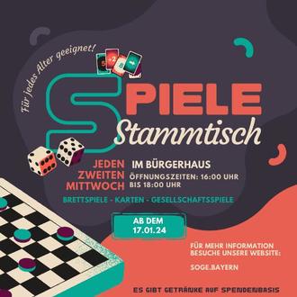 Wer gerne Gesellschaftsspiele in kleinerer oder größerer Runde spielt dürfte bei unserem neuen Angebot ab Januar 2024 genau richtig sein. Ob es nun Monopoly, Schafkopf, Skippo, Skat oder Siedler von Catan ist – ob ihr jung oder alt (oder dazwischen) seid – völlig egal. Wir treffen uns ab 17. Januar 2024 immer 14-tägig im Bürgerhaus zum ausgiebigen Spielen. Ihr könnt gerne Freunde, Verwandte und Bekannte mitbringen und für ein paar Stunden in verschiedenste Spiele abtauchen und Spaß mit Gleichgesinnten haben. Dieser Spielestammtisch ist für alle Altersklassen offen.
