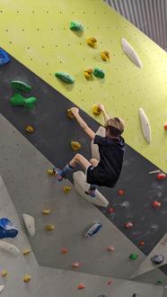 Chaos und Bouldern – na ja fast. Bevor wir am Mittag mit dem Zug in die Boulderhalle nach Rödental aufbrachen, gings erstmal mit einem Chaosspiel quer durchs Haus los. Chaosspiel? Jap – man würfelt, sucht die Zahl und das dazugehörige „Passwort“ und kommt zurück um mit der eigenen Kleingruppe eine Aufgabe zu lösen um dann wieder zu würfeln… bis man im Ziel bestenfalls als Erster ankommt. Nach einer Runde lecker Essen im Bürgerhaus gings dann mit dem Zug in die Boulderhalle wo Julia und die Teilnehmer*innen die letzten Reserven rausholten und Matze mal so richtig zeigten, wie man fix eine Wand hochklettert. Tja, da muss er noch viel lernen…