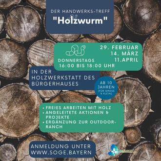 Holzwurm-Werkstatt: Die Holzwurm-Werkstatt ist ein neues Angebot und findet alle 14 Tage donnerstags in der Werkstatt des Bürgerhauses statt. Es kann sich immer für einen Block angemeldet werden. Nur mit Anmeldung kann am Programm teilgenommen werden. Bei Fragen, meldet euch einfach bei uns.