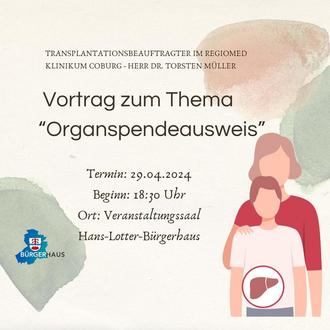 Vorankündigung für den Vortrag „Organspendeausweis“ im Hans-Lotter Bürgerhaus